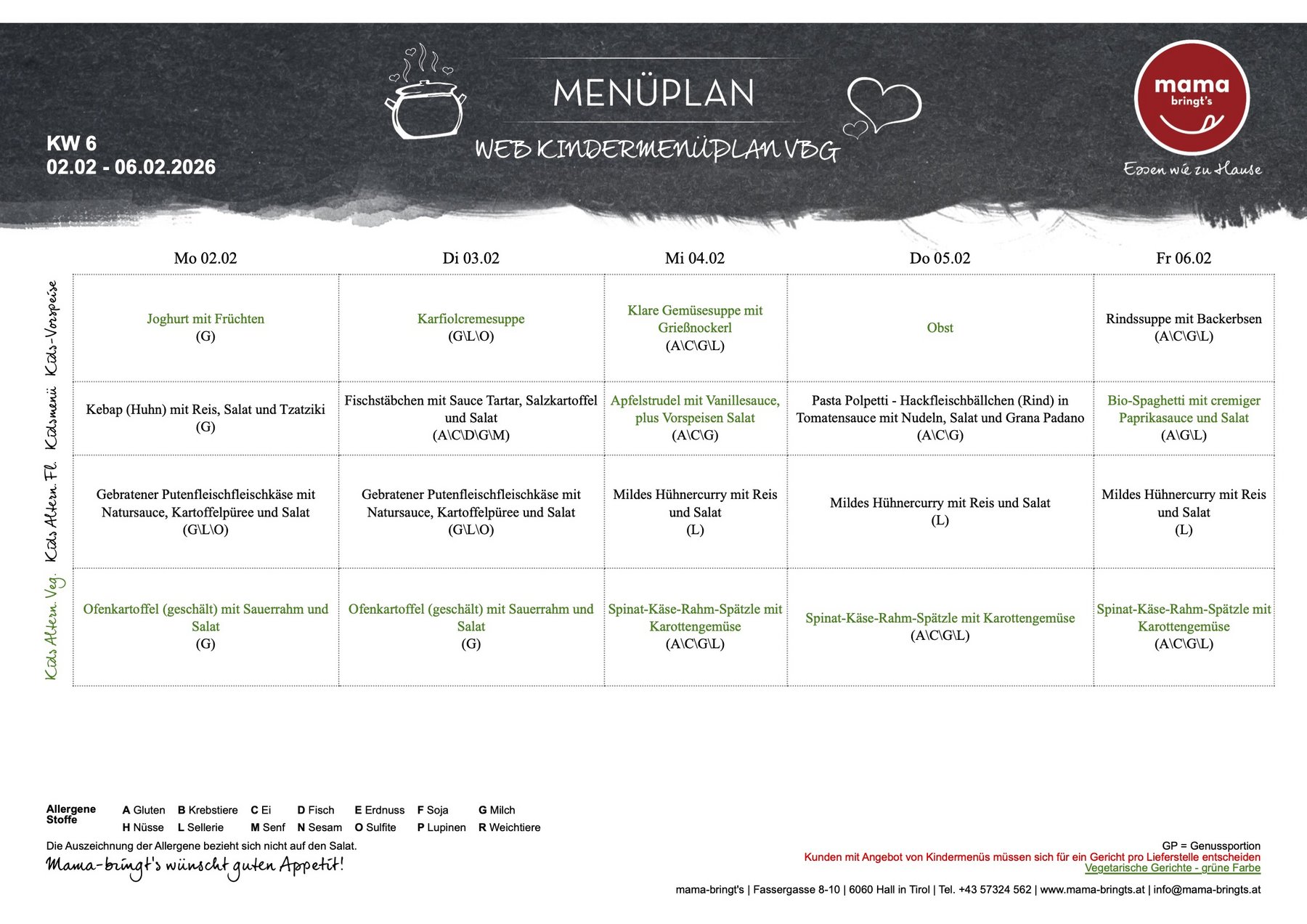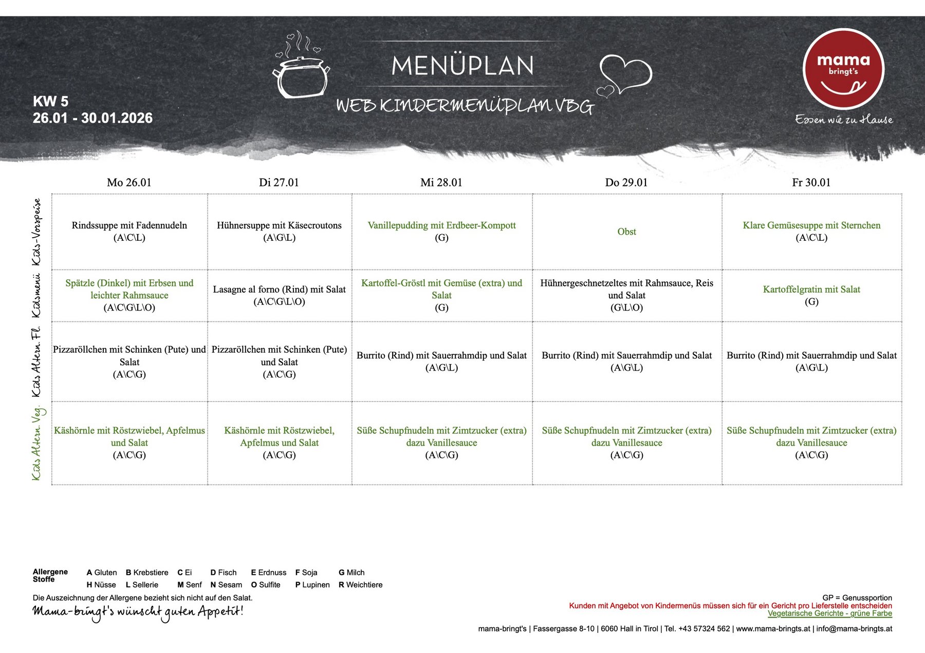 In diesem Schuljahr wird das Mittagessen von uns bestellt und von "mama bringt's" geliefert.